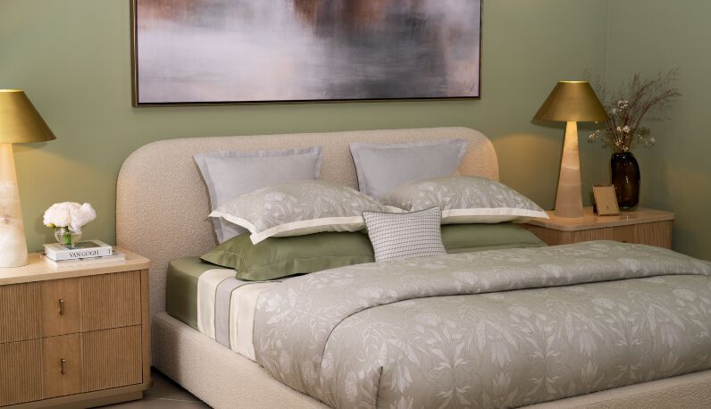 Reset and relax in elegant linens and cozy essentials from Caracole, Frette, and more